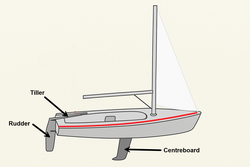 Image Description: Diagram of a sailboat showing the rudder located at the stern.